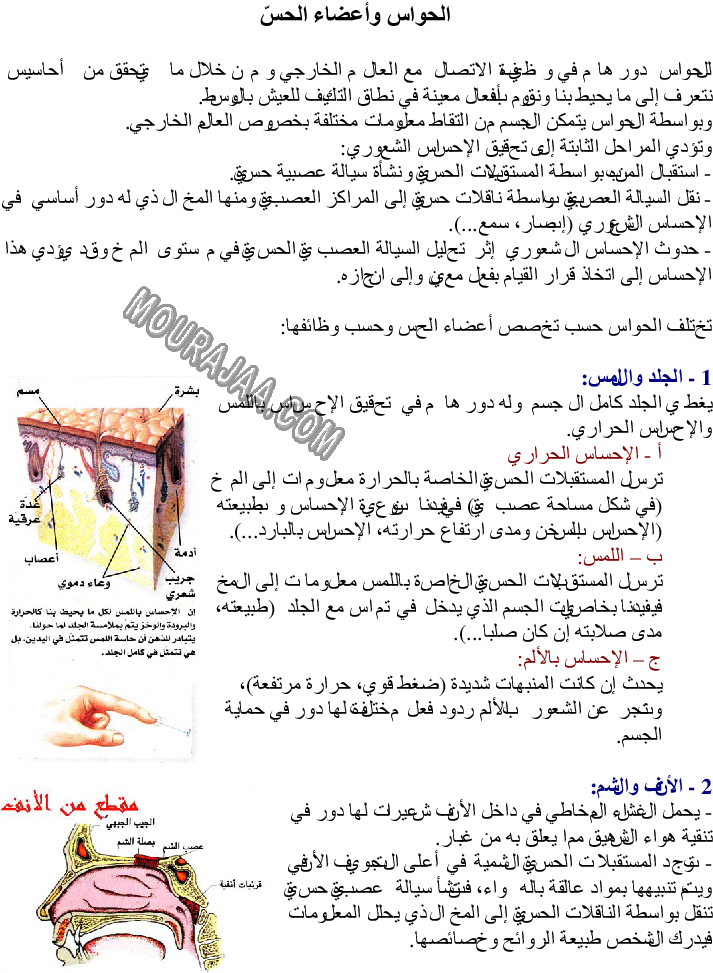 الحواس وأعضاء الحسّ هو عنوان لمحور درس مادة الايقاظ العلمي لـسنة رابعة ابتدائي