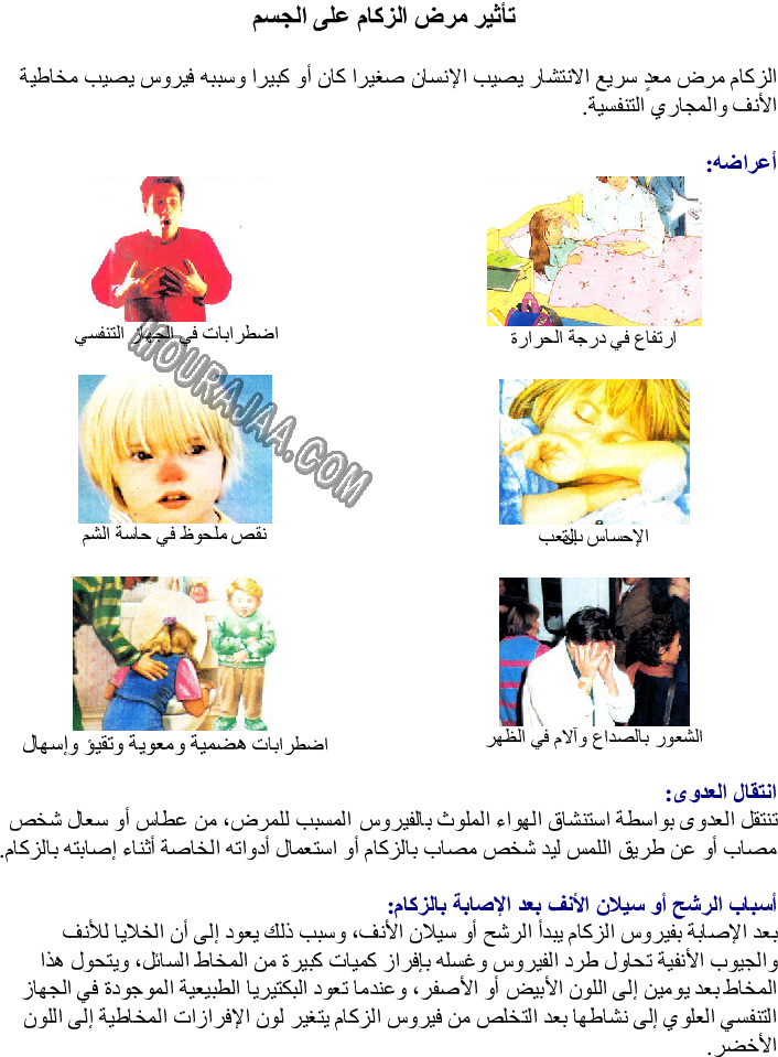 و يتمثل البحث تعريف تأثير مرض الزكام على الجسم و معلومات حوله مع صور لتبسيط درس تأثير مرض الزكام على الجسم في مادة االايقاظ العلمي لسنة رابعة ابتدائي