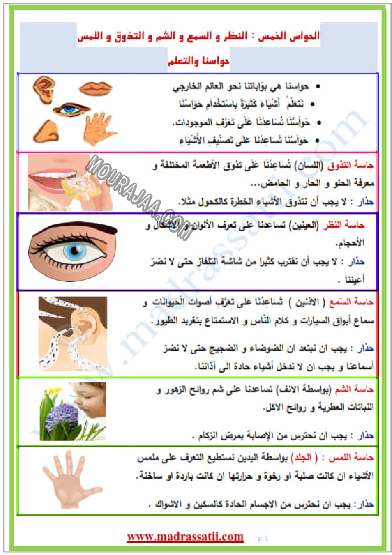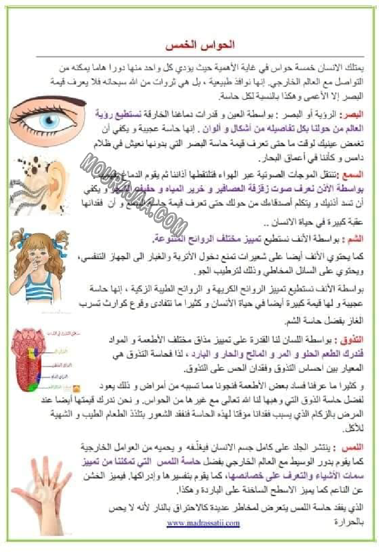 حواس هو عنوان لمحور درس مادة الايقاظ العلمي لـسنة رابعة ابتدائي