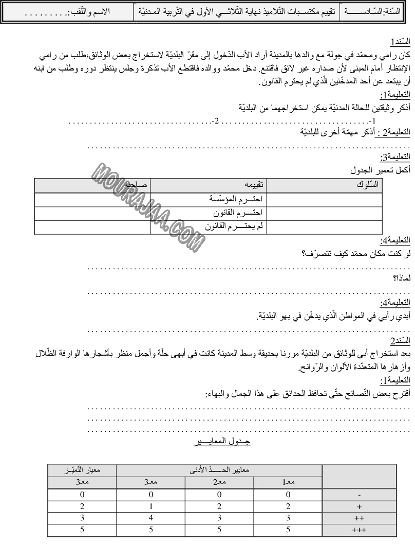 التربيّة المدنيّة-السنة السادسة-الثلاثي الأول-1