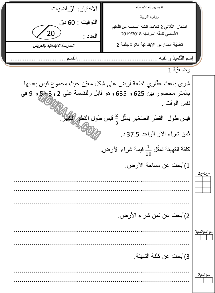إمتحان-رياضيات-ثلاثي-2--2018-2019(Salah-Samaali)[العريش]
