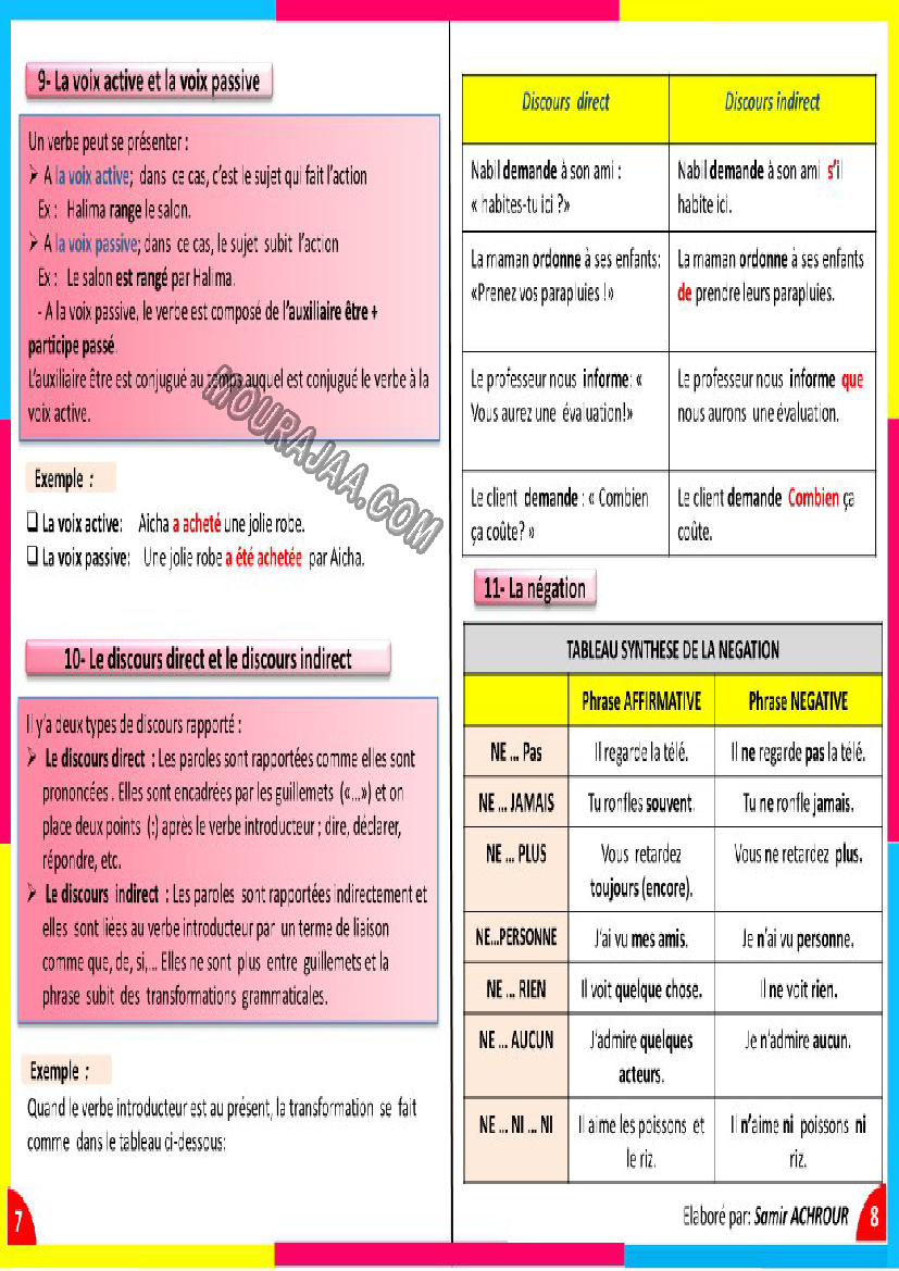 conjugaison هو عنوان لمحور درس مادة لسنة سادسة ابتدائي