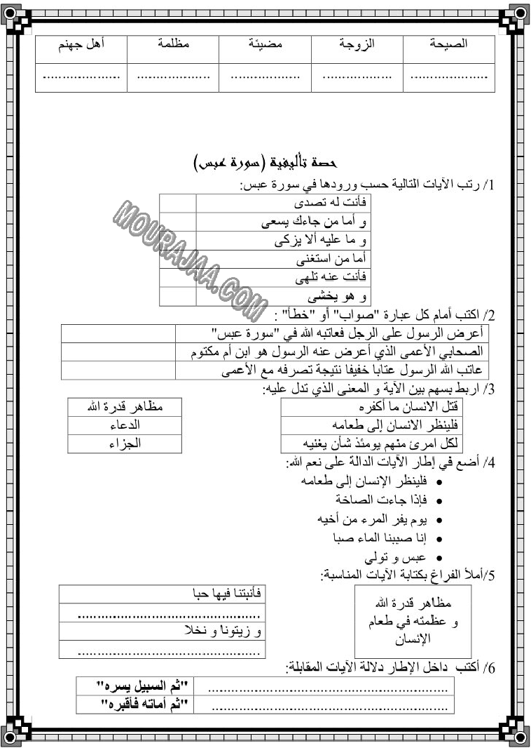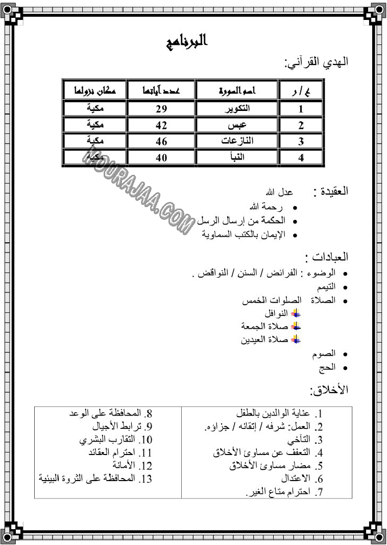 ملخص-التربية-الإسلامية هو عنوان لمحور درس مادة تربية اسلاميةلسنة سادسة ابتدائي