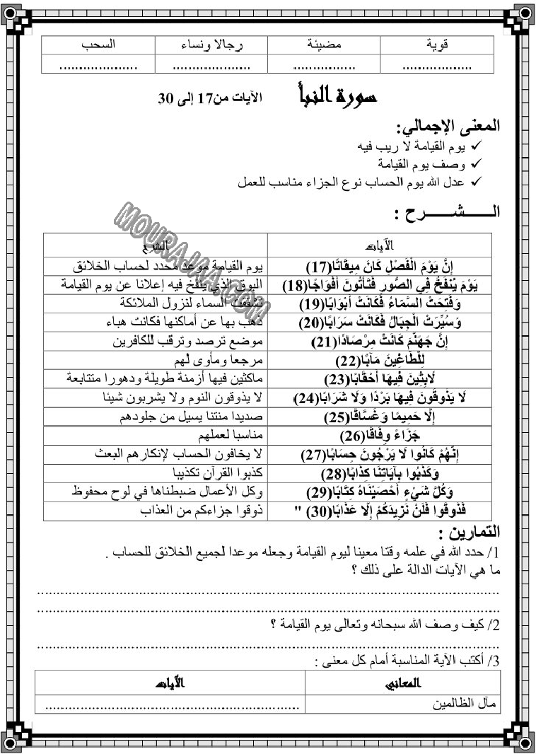 يتحدث الدرس على ملخص-التربية-الإسلامية (2) لمساعدة تلميذ سنة سادسة ابتدائي في مراجعة دروسه و امتحاناته و ذلك عبر تحميله في صيغة ملف او مشاهدته في صيغة صور