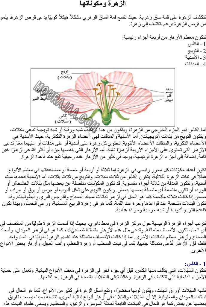 و يتمثل البحث تعريف الزهرة ومكوناتها و معلومات حوله مع صور لتبسيط درس الزهرة ومكوناتها في مادة االايقاظ العلمي لسنة سادسة ابتدائي