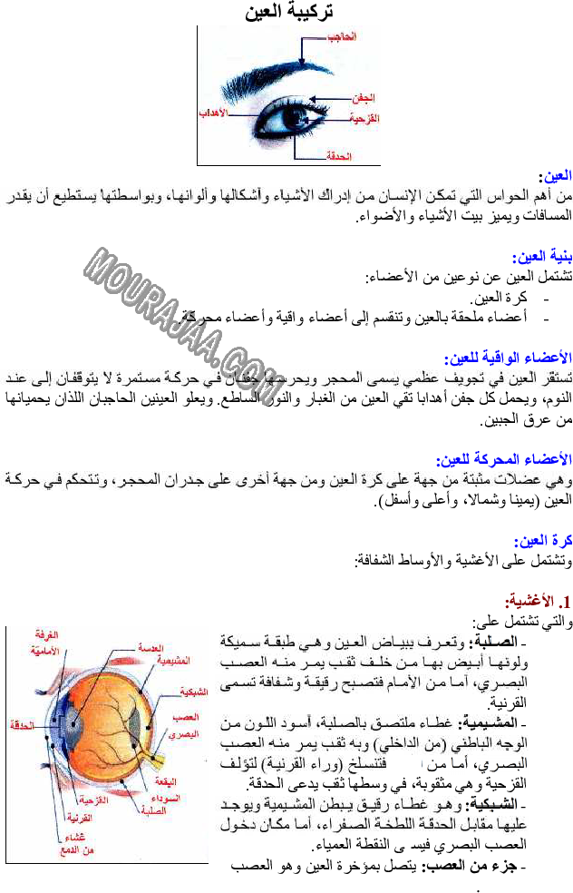 تركيبة العين هو عنوان لمحور درس مادة الايقاظ العلمي لـسنة سادسة ابتدائي