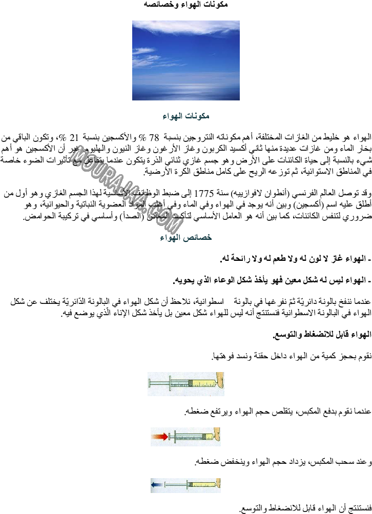 مكونات الهواء وخصائصه هو عنوان لمحور درس مادة الايقاظ العلمي لـسنة سادسة ابتدائي