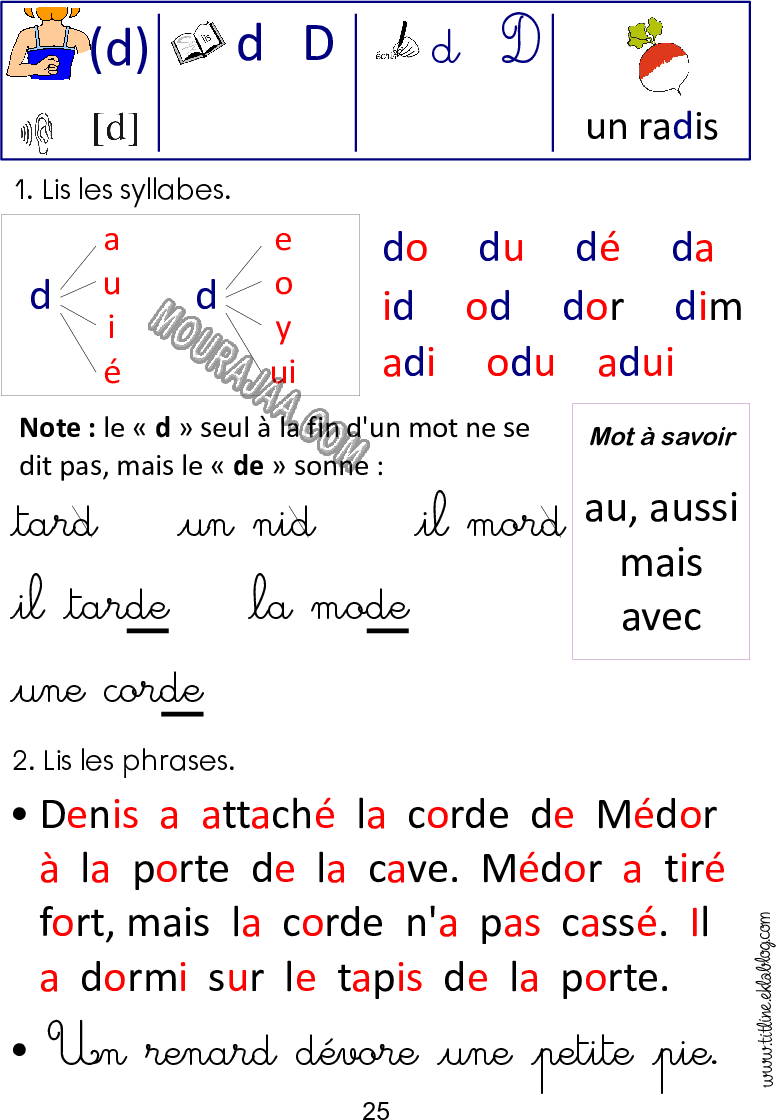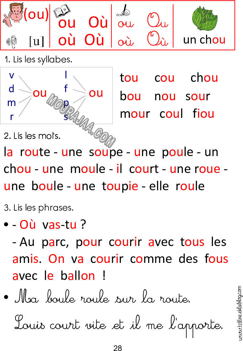 la leçon se deroule sur aprrentissage-de-la-lecture pour aider l eleve de troisieme annee primaire Pour revoir ses cours et examens en le téléchargeant sous forme de fichier ou en le visualisant sous forme d'images