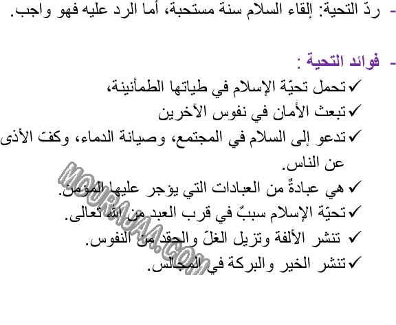 الصلوات الخمس - مراحل الركعة - نص التشهد - حسن الجوار هو عنوان لمحور درس مادة تربية اسلاميةلسنة ثالثة ابتدائي