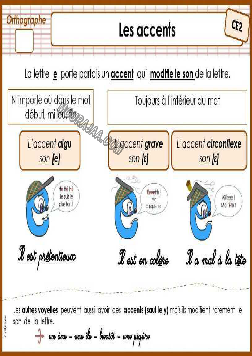 la leçon se deroule sur les accent pour aider l eleve de troisieme annee primaire Pour revoir ses cours et examens en le téléchargeant sous forme de fichier ou en le visualisant sous forme d'images