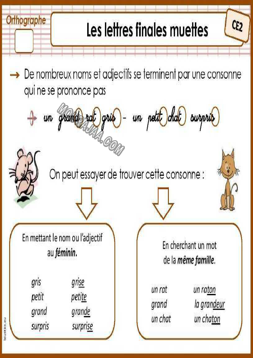 la leçon se deroule sur les lettre finales muettes pour aider l eleve de troisieme annee primaire Pour revoir ses cours et examens en le téléchargeant sous forme de fichier ou en le visualisant sous forme d'images