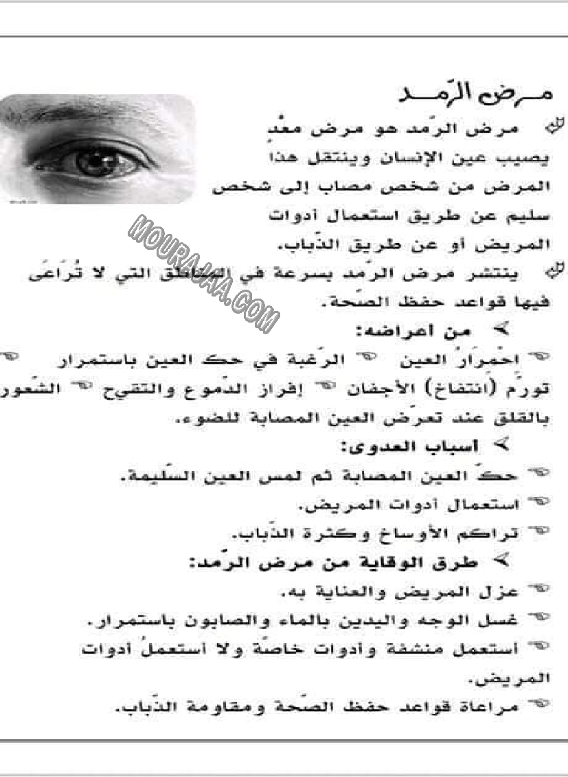 و يتمثل الدرس في تعريف و تلخيص مرض الرمد و معلومات حوله مع صور لتبسيط درس مرض الرمد في مادة ايقاظ علميلسنة ثالثة ابتدائي