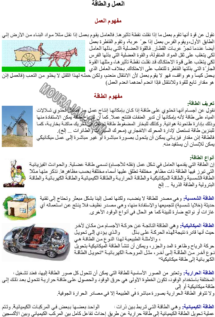 و يتمثل البحث تعريف العمل والطاقة و معلومات حوله مع صور لتبسيط درس العمل والطاقة في مادة االايقاظ العلمي لسنة ثالثة ابتدائي
