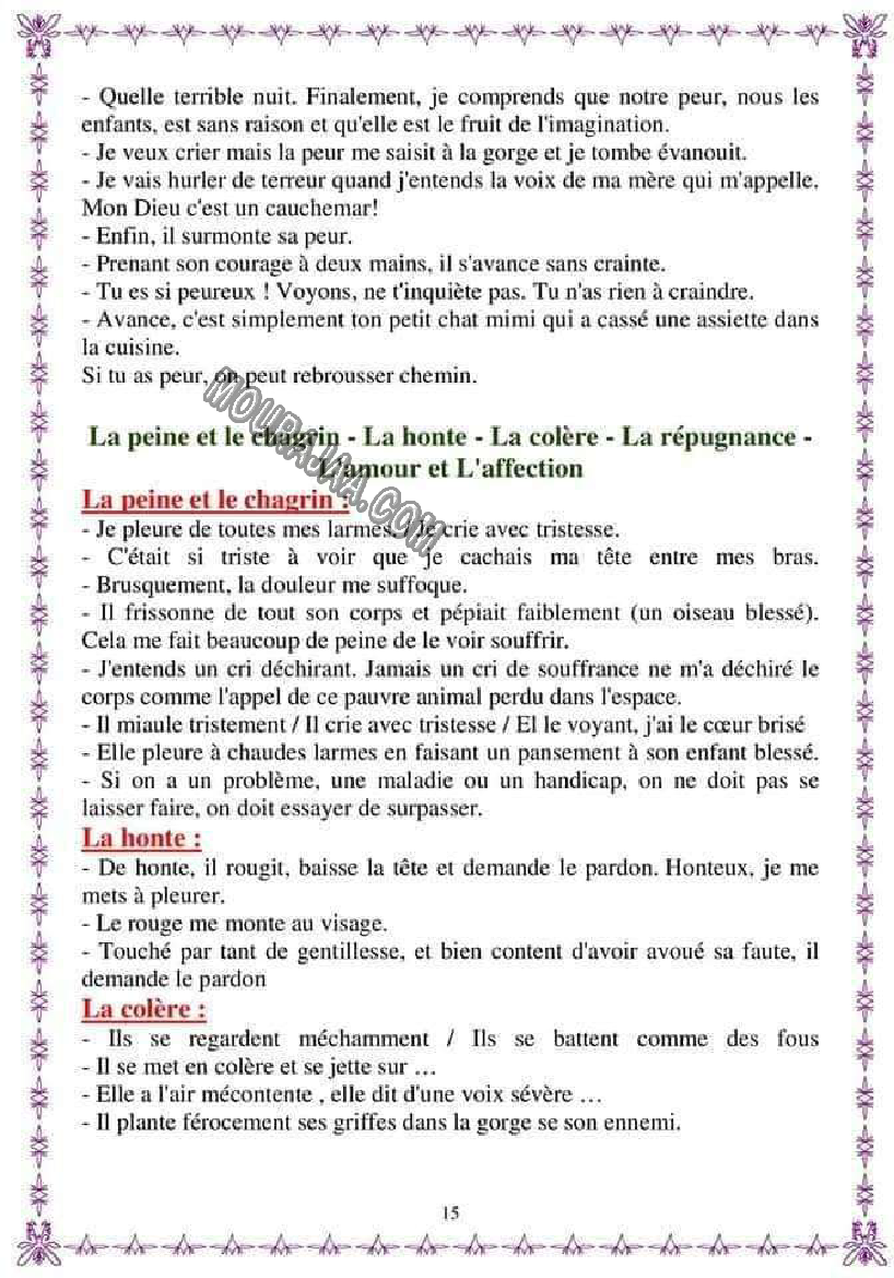 بحث حول la peine et la chagrin في مادة الايقاظ العلمي لتلاميذ سنة خامسة ابتدائي