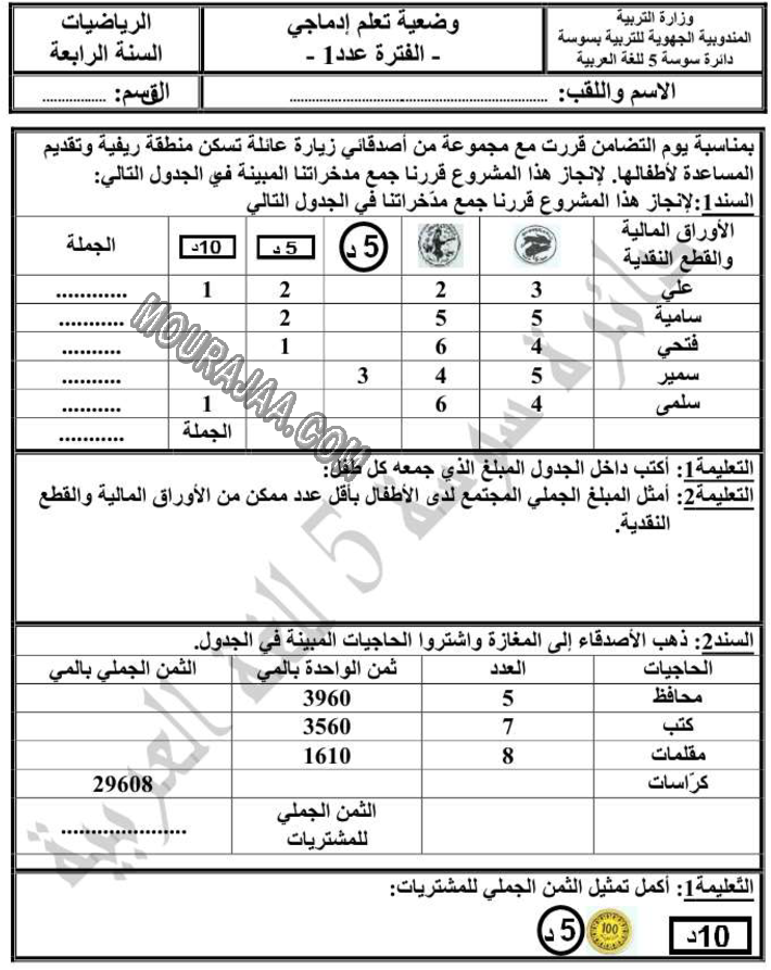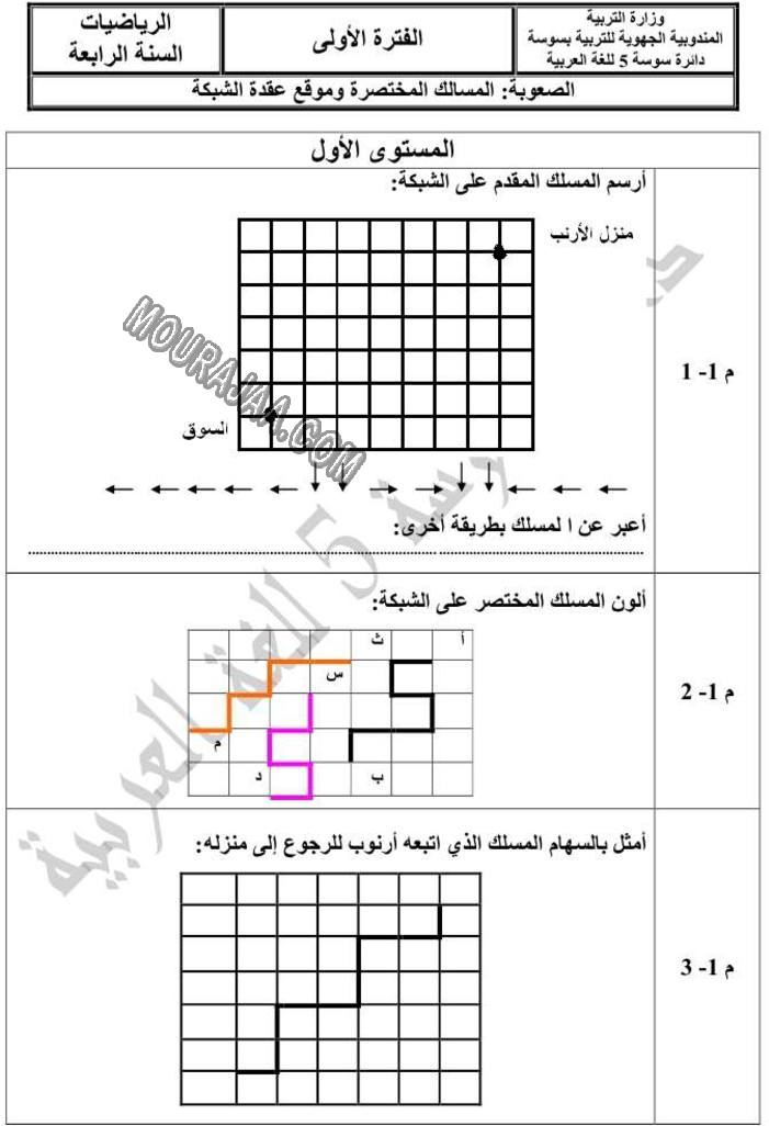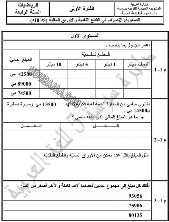 النقود المزيفة - المسافات هو عنوان لمحور درس مادة رياضياتلسنة رابعة ابتدائي