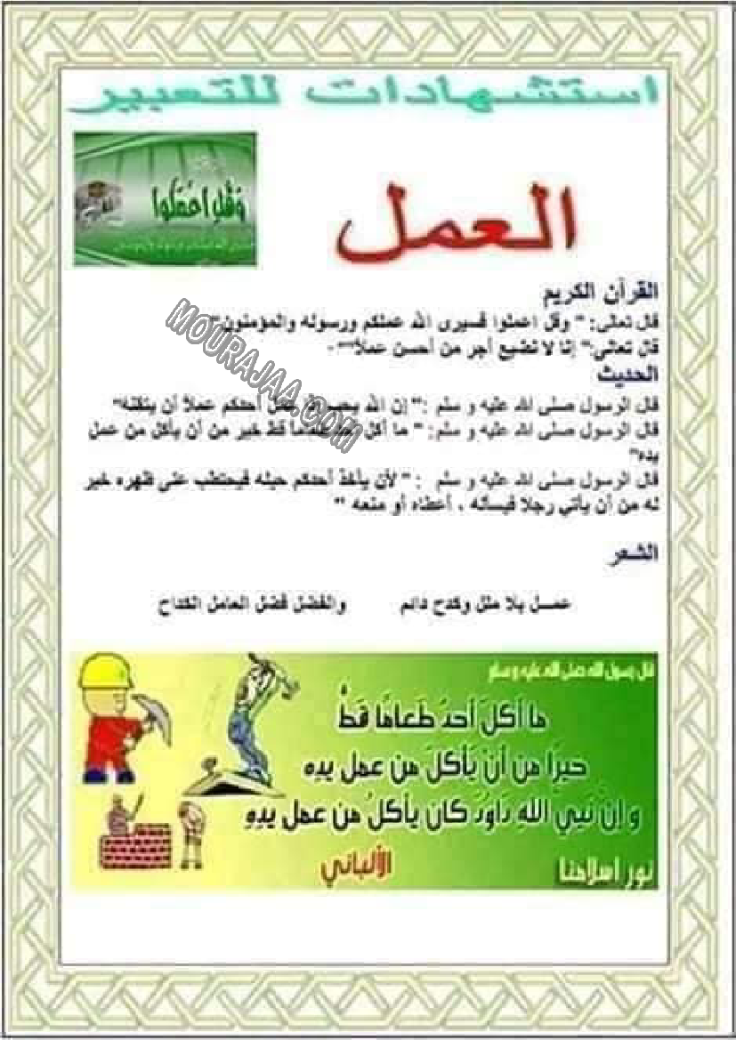 العمل هو عنوان لمحور درس مادة تربية اسلاميةلسنة رابعة ابتدائي