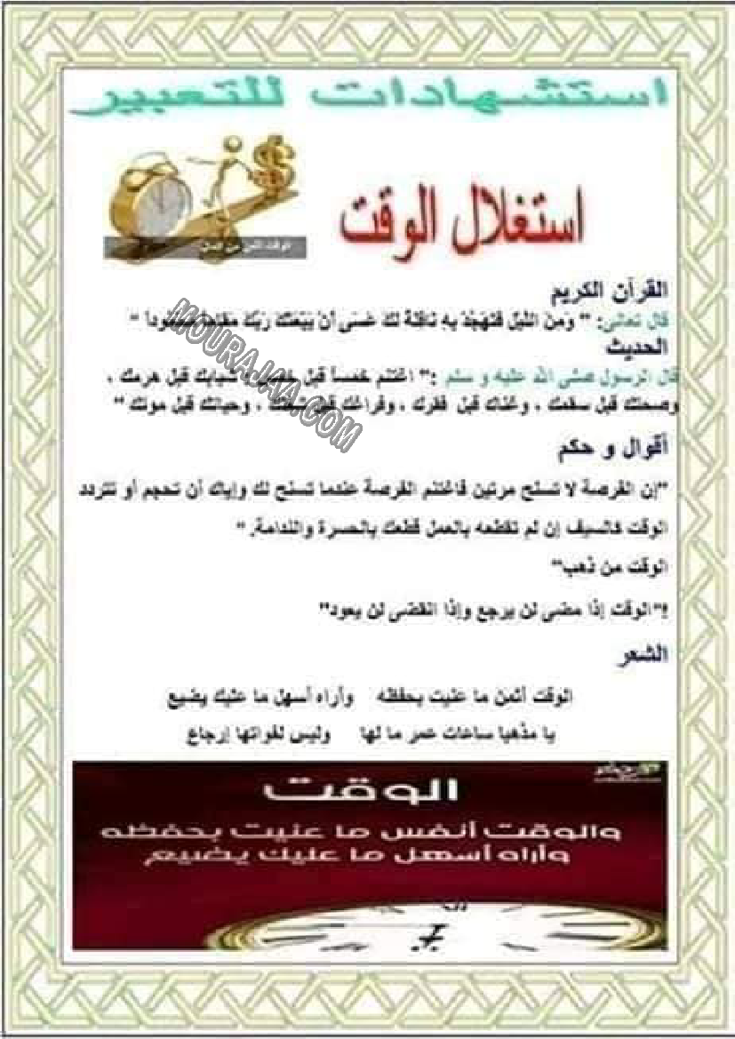 استغلال الوقت هو عنوان لمحور درس مادة تربية اسلاميةلسنة رابعة ابتدائي