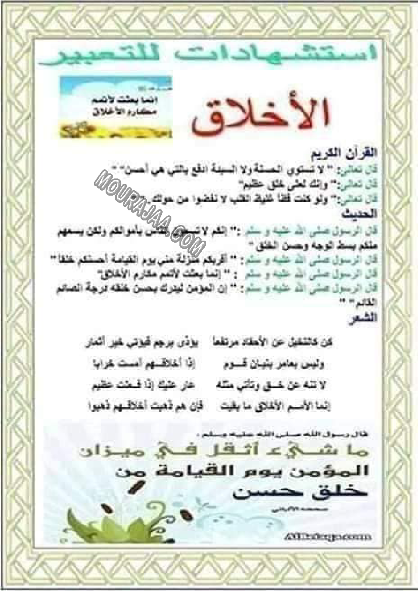 درس حول الاخلاق في مادة تربية اسلامية لتلاميذ سنة رابعة ابتدائي