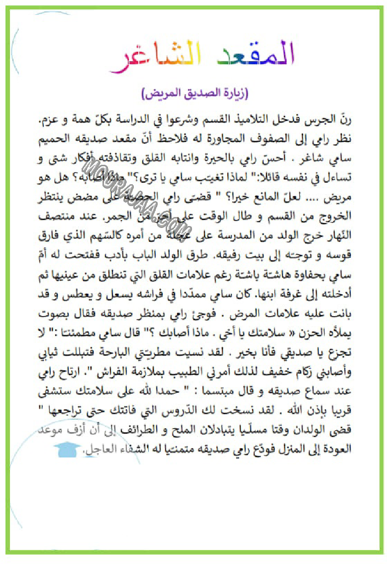 زيارة الصديق المريض هو عنوان لمحور درس مادة الايقاظ العلمي لـسنة ثالثة ابتدائي