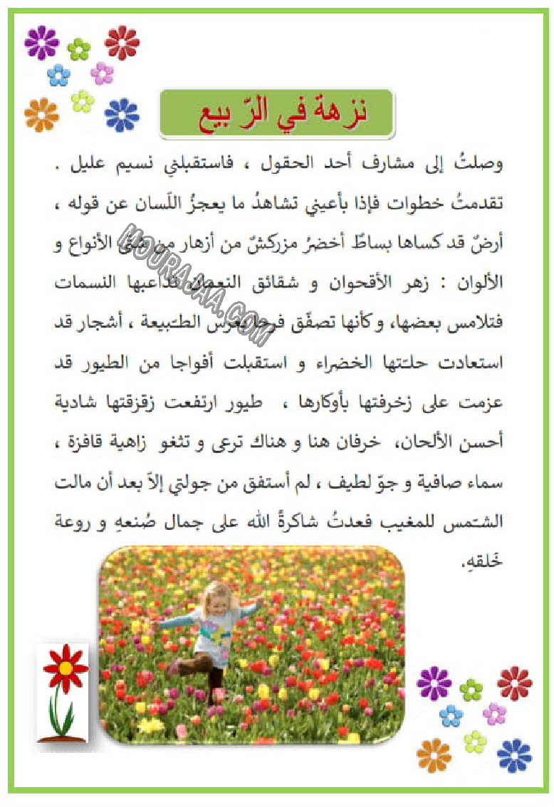 يتحدث البحث على نزهة في الربيع لمساعدة تلميذ سنة ثالثة ابتدائي في مراجعة دروسه و امتحاناته و ذلك عبر تحميله في صيغة ملف او مشاهدته في صيغة صور