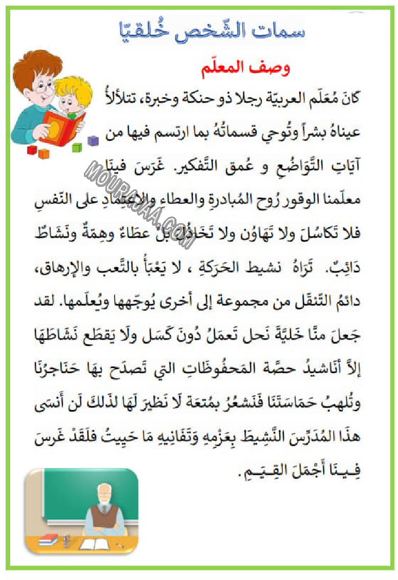 وصف المعلم هو عنوان لمحور درس مادة الايقاظ العلمي لـسنة ثالثة ابتدائي