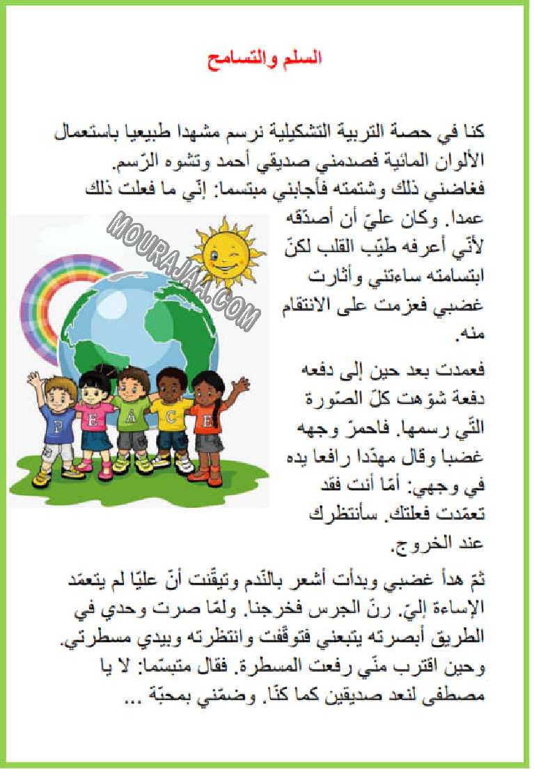 بحث حول السلم و التسامح في مادة الايقاظ العلمي لتلاميذ سنة سادسة ابتدائي
