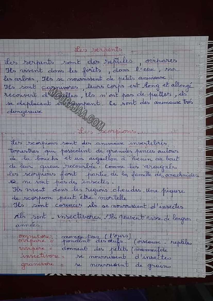 بحث حول description les animaux في مادة الايقاظ العلمي لتلاميذ سنة خامسة ابتدائي