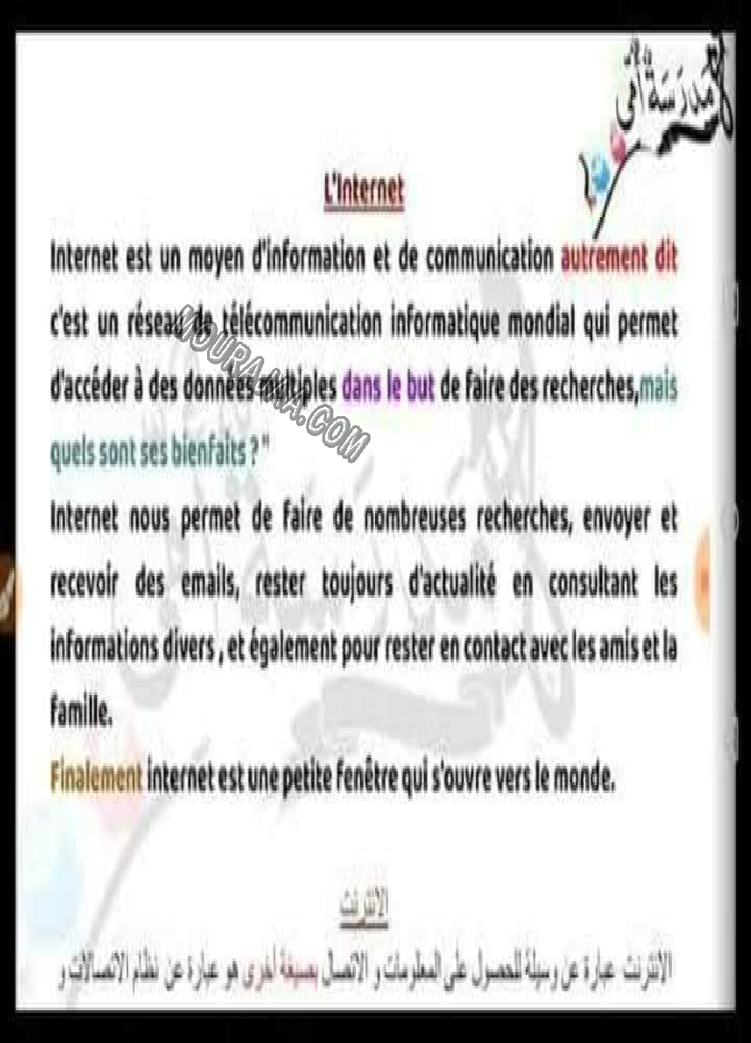 بحث حول internet في مادة الايقاظ العلمي لتلاميذ سنة سادسة ابتدائي