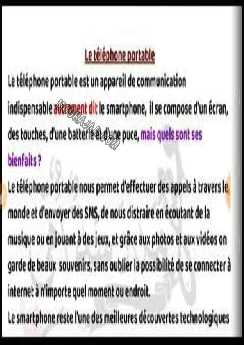 بحث حول le telephone portable في مادة الايقاظ العلمي لتلاميذ سنة سادسة ابتدائي