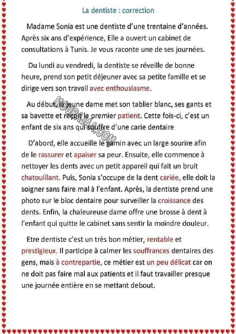 بحث حول production sur la dentiste في مادة الايقاظ العلمي لتلاميذ سنة سادسة ابتدائي