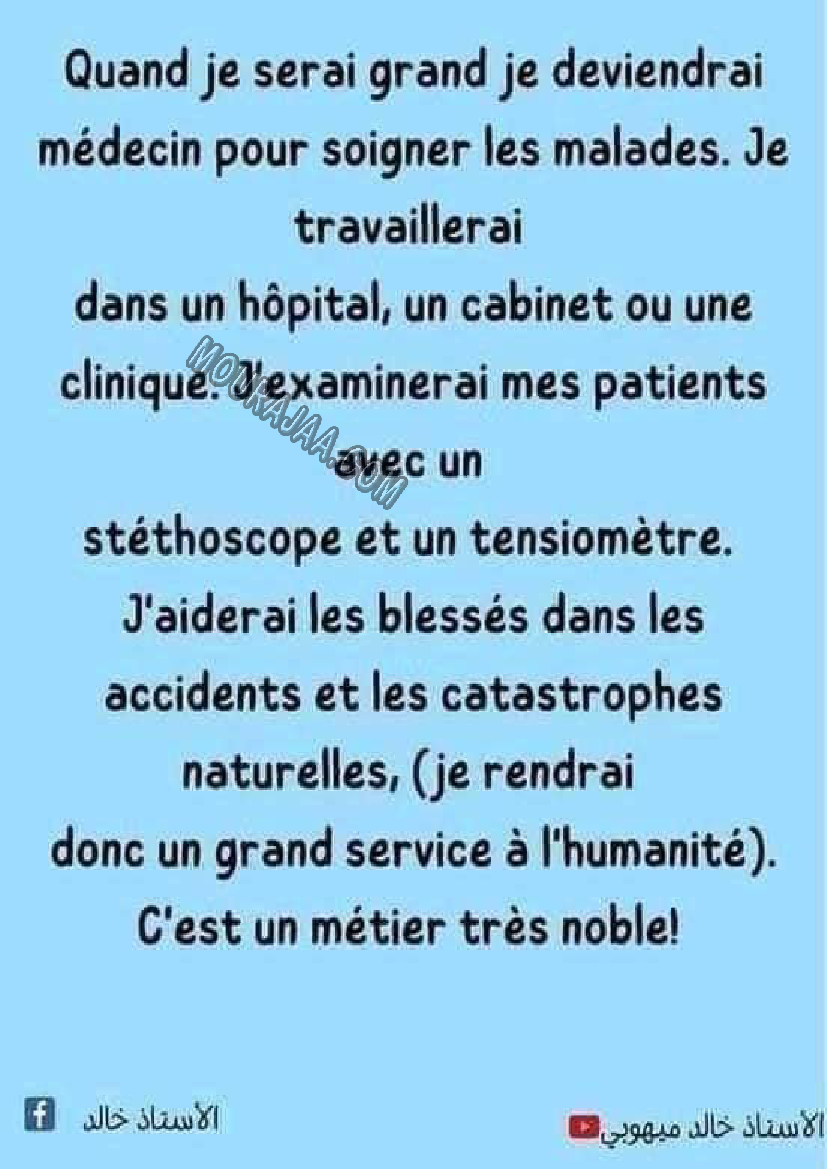 يتحدث البحث على production sur le medecin لمساعدة تلميذ سنة سادسة ابتدائي في مراجعة دروسه و امتحاناته و ذلك عبر تحميله في صيغة ملف او مشاهدته في صيغة صور