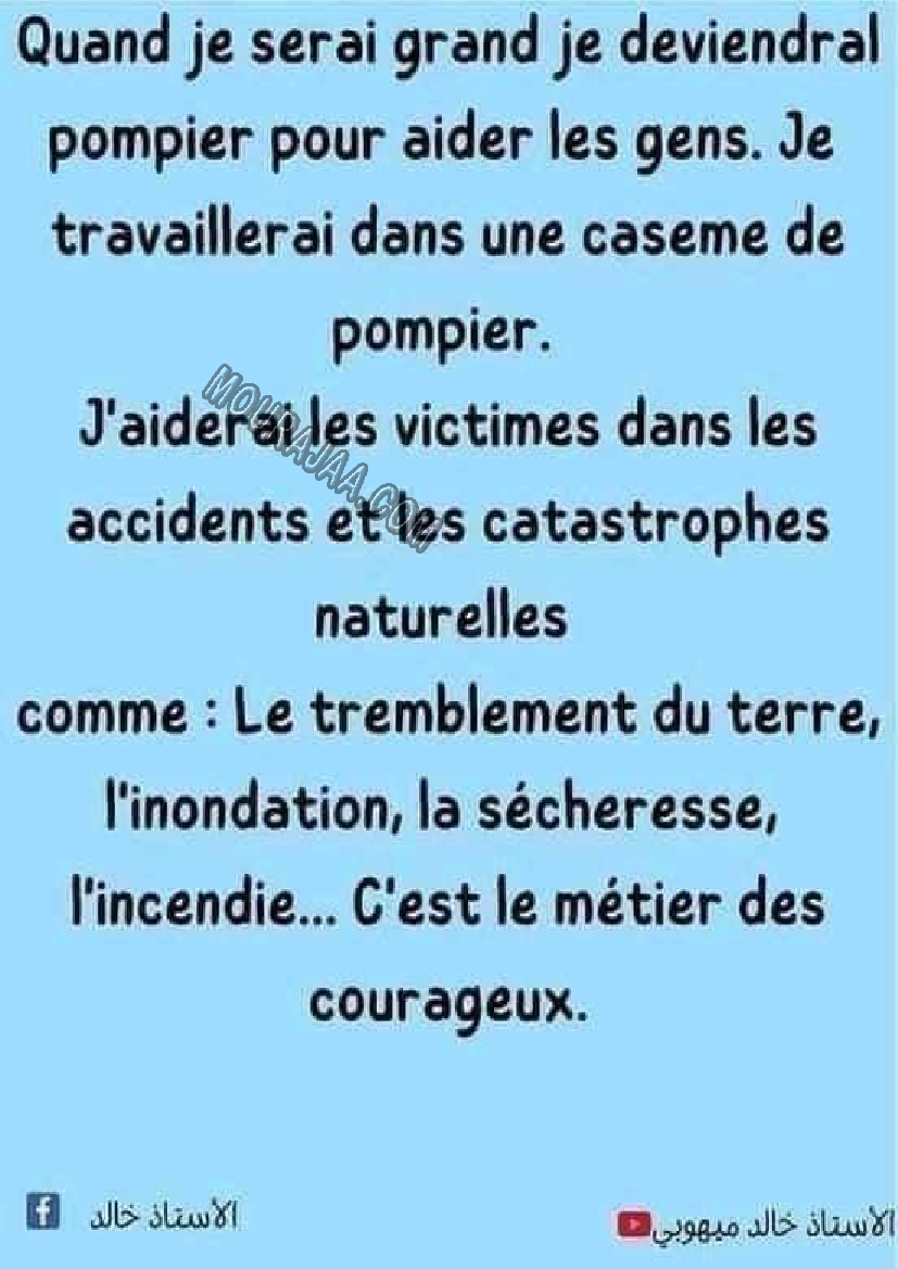 بحث حول production sur le pompier في مادة الايقاظ العلمي لتلاميذ سنة سادسة ابتدائي
