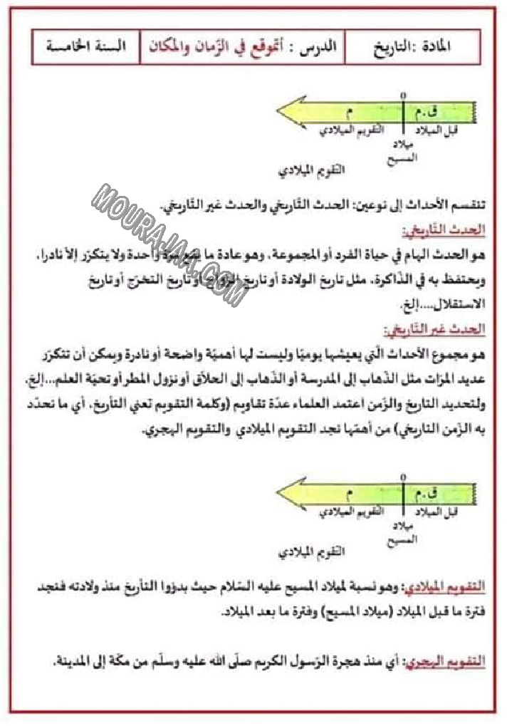 اتموقع الزمان و المكان هو عنوان لمحور درس مادة تاريخلسنة خامسة ابتدائي