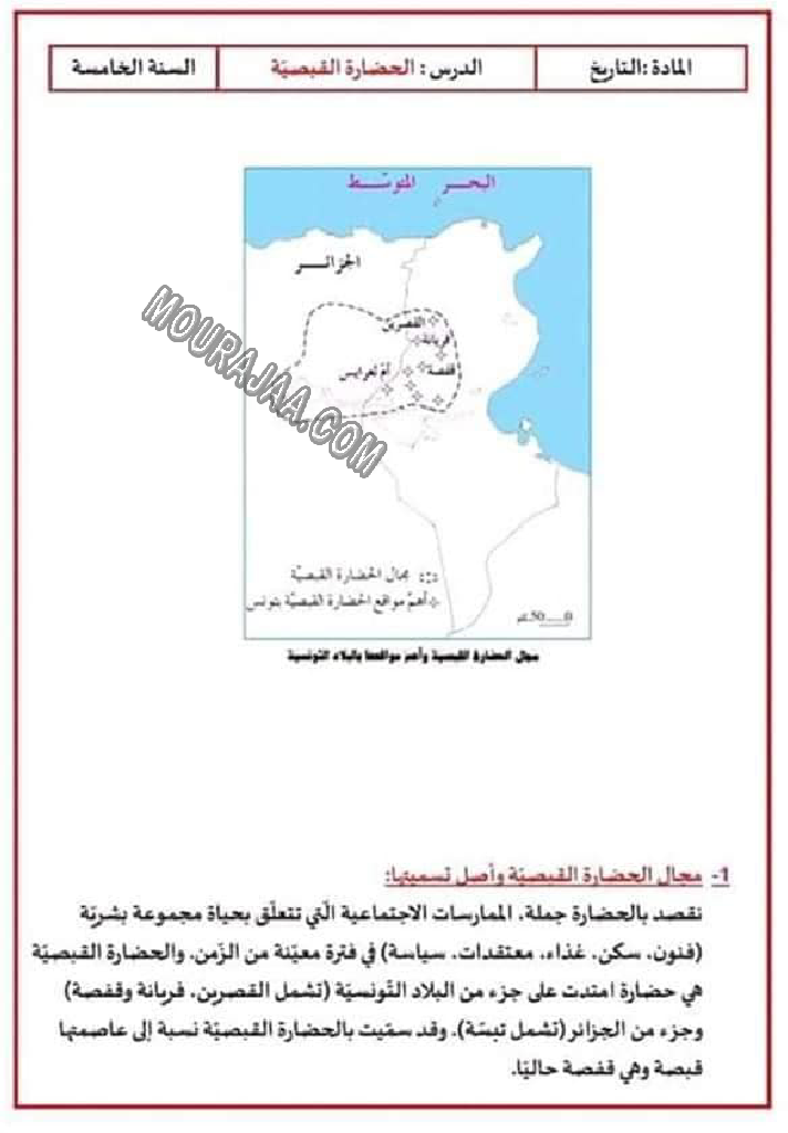 الحضارة القبصية هو عنوان لمحور درس مادة تاريخلسنة خامسة ابتدائي