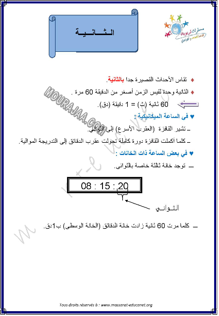 درس حول الثانية في مادة ايقاظ علمي لتلاميذ سنة رابعة ابتدائي
