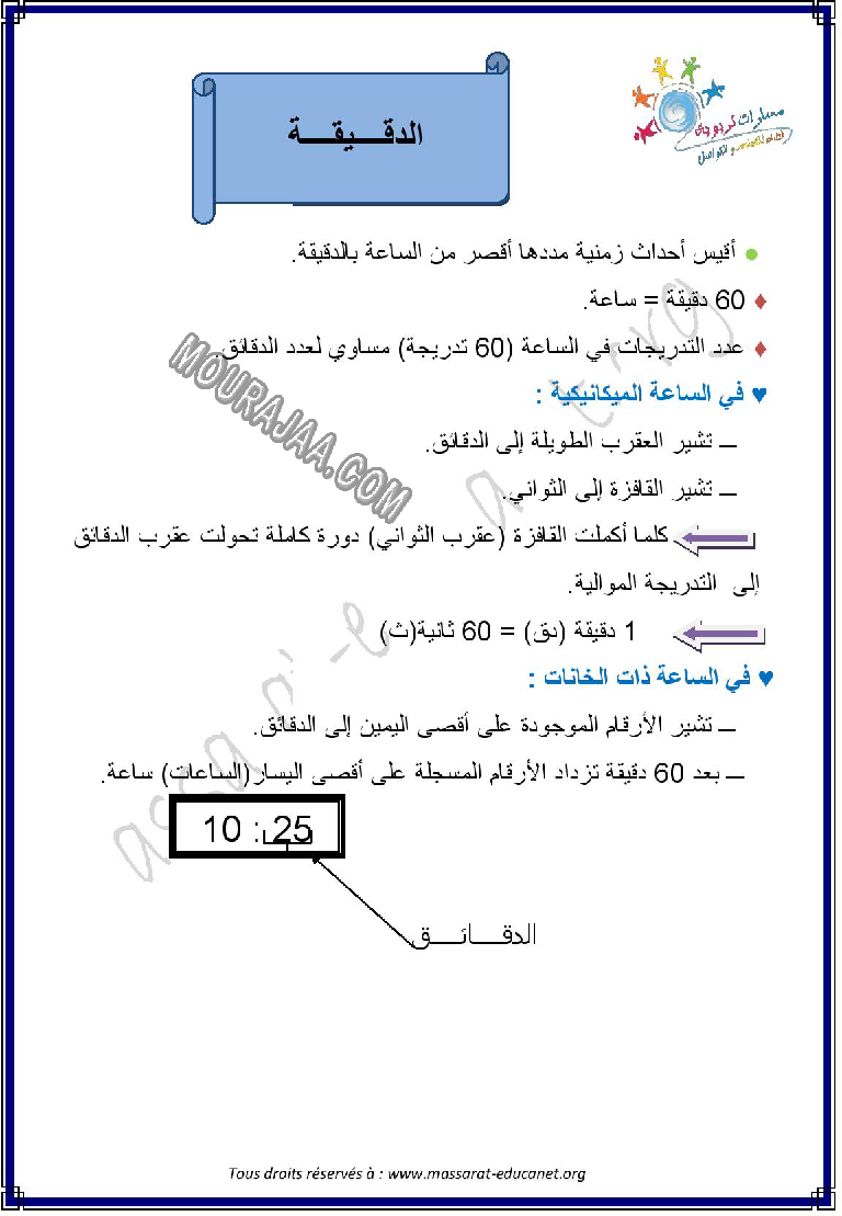 درس حول الدقيقة في مادة ايقاظ علمي لتلاميذ سنة رابعة ابتدائي