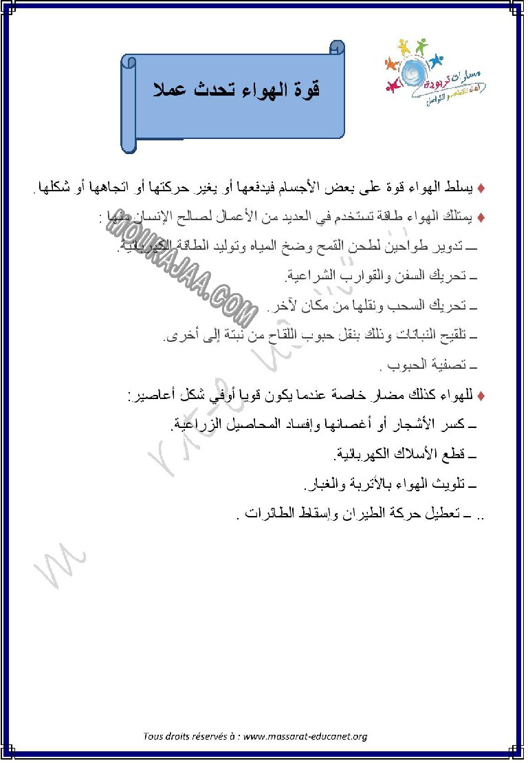 و يتمثل الدرس في تعريف و تلخيص قوة الهواء تحدث عمل و معلومات حوله مع صور لتبسيط درس قوة الهواء تحدث عمل في مادة ايقاظ علميلسنة رابعة ابتدائي