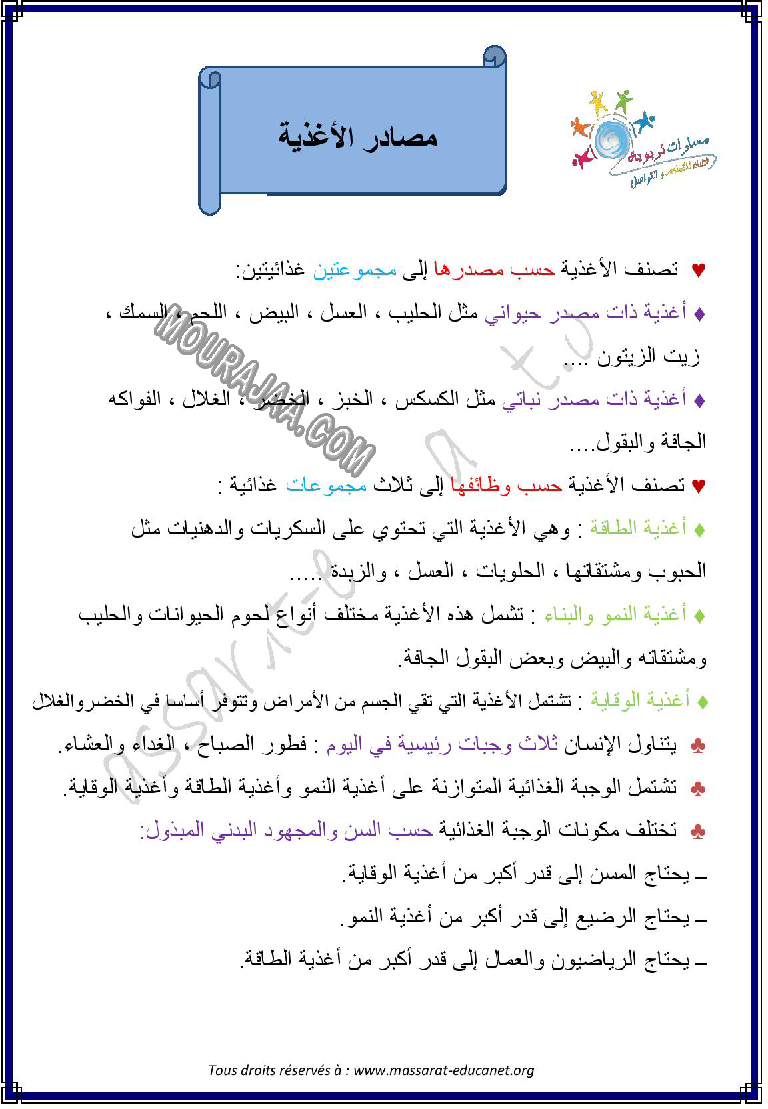 يتحدث الدرس على مصادر الاغذية لمساعدة تلميذ سنة رابعة ابتدائي في مراجعة دروسه و امتحاناته و ذلك عبر تحميله في صيغة ملف او مشاهدته في صيغة صور