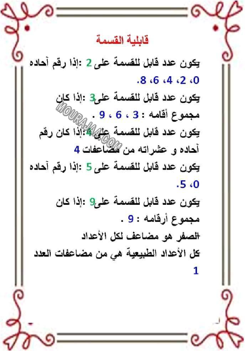 و يتمثل الدرس في تعريف و تلخيص قابلية القسمة و معلومات حوله مع صور لتبسيط درس قابلية القسمة في مادة رياضياتلسنة سادسة ابتدائي