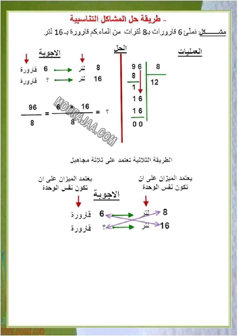و يتمثل الدرس في تعريف و تلخيص طريقة حل المسائل التناسبية و معلومات حوله مع صور لتبسيط درس طريقة حل المسائل التناسبية في مادة رياضياتلسنة سادسة ابتدائي