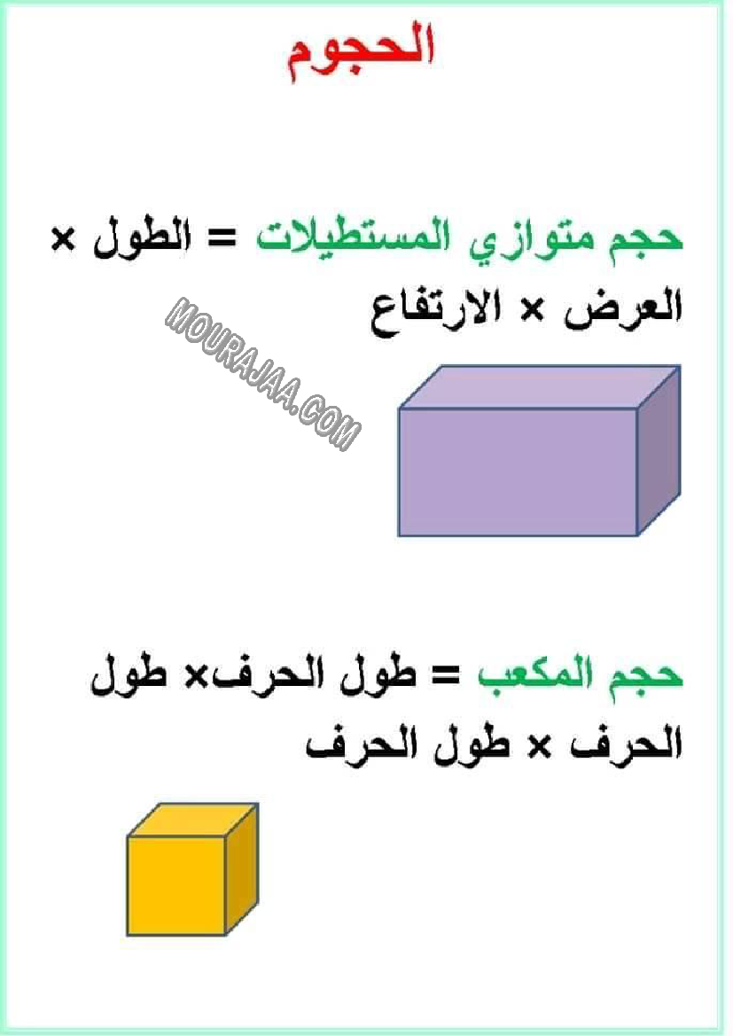 الحجوم هو عنوان لمحور درس مادة رياضياتلسنة سادسة ابتدائي
