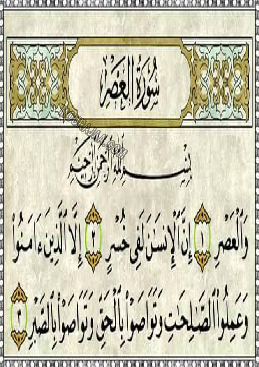 سورة العصر هو عنوان لمحور درس مادة تربية اسلاميةلسنة ثانية ابتدائي