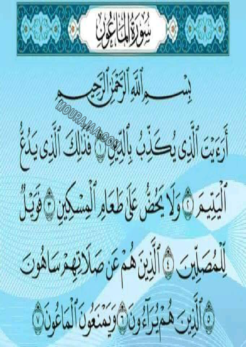 سورة الماعون هو عنوان لمحور درس مادة تربية اسلاميةلسنة ثانية ابتدائي