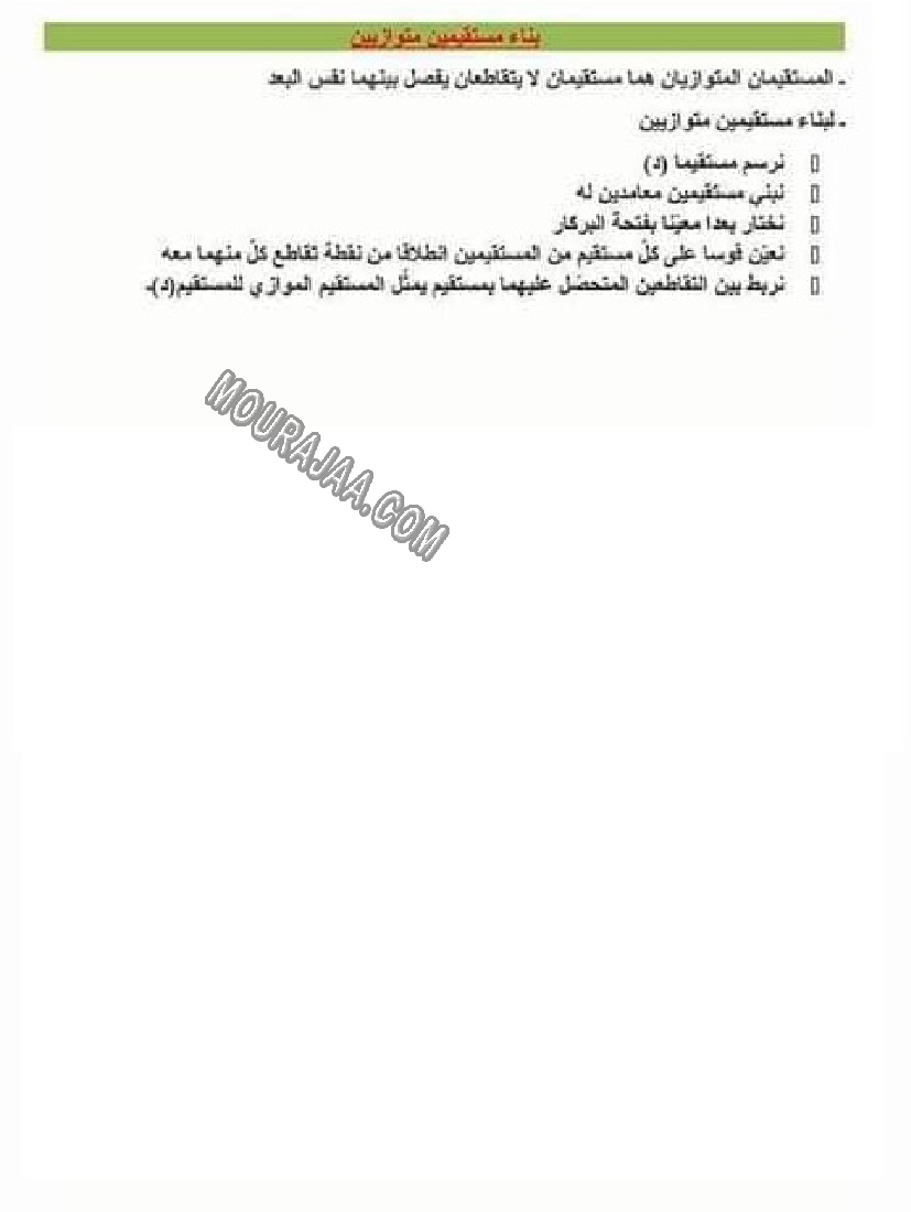 بناء مستقيمين متوازيين هو عنوان لمحور درس مادة رياضياتلسنة سادسة ابتدائي