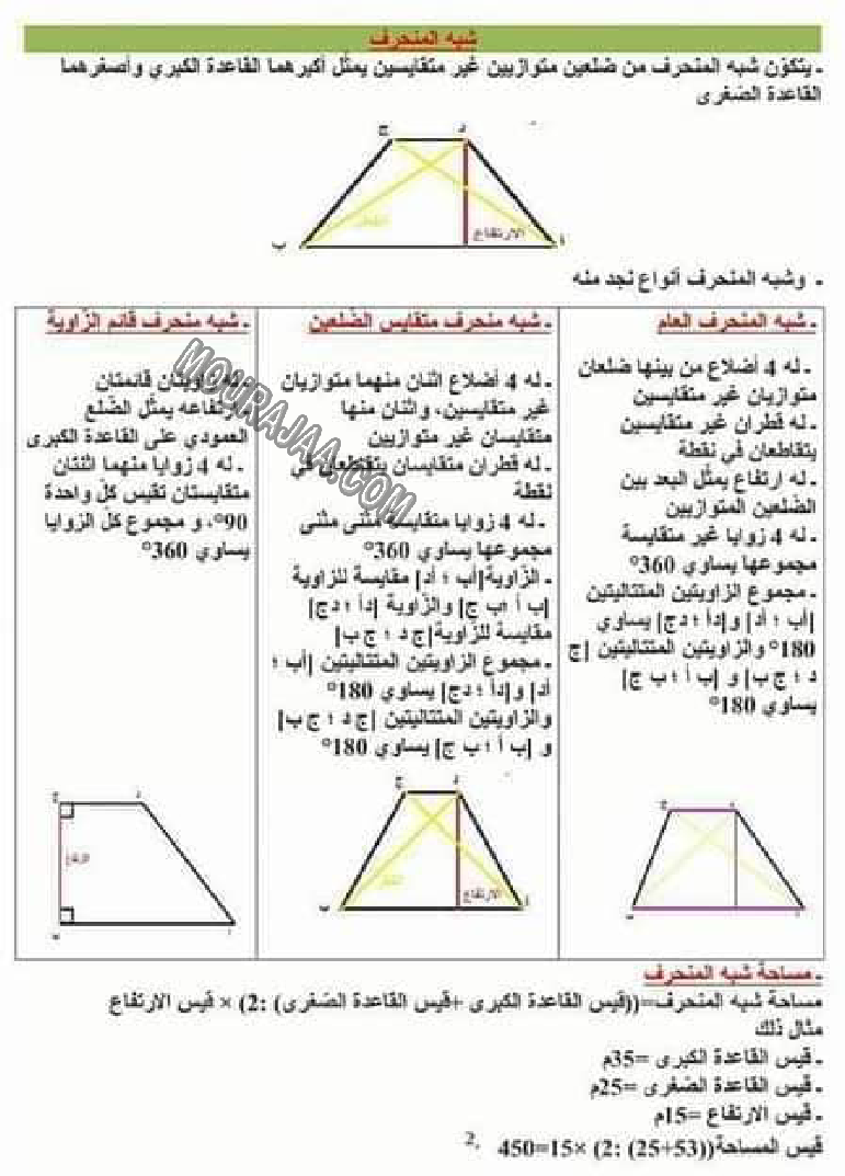 شبه المنحرف هو عنوان لمحور درس مادة رياضياتلسنة سادسة ابتدائي