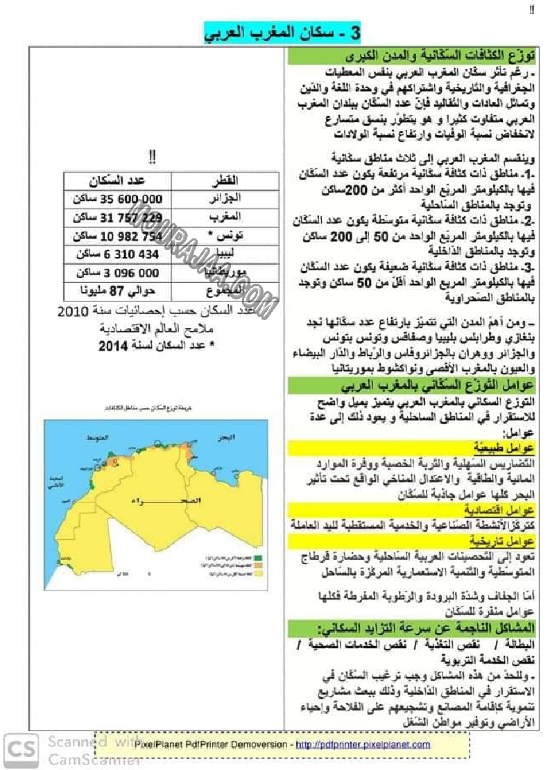 سكان المغرب العربي هو عنوان لمحور درس مادة جغرافيالسنة سادسة ابتدائي