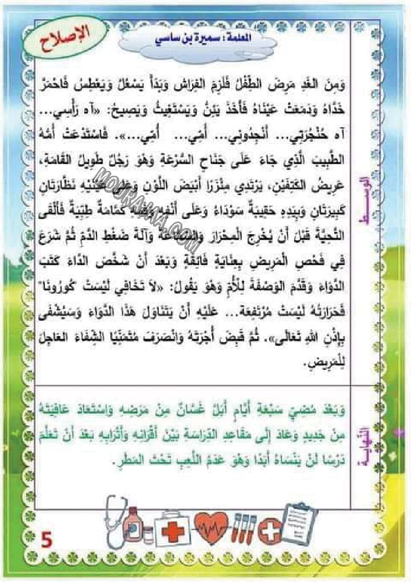 درس الصحة هو عنوان لمحور درس مادة الايقاظ العلمي لـسنة ثالثة ابتدائي