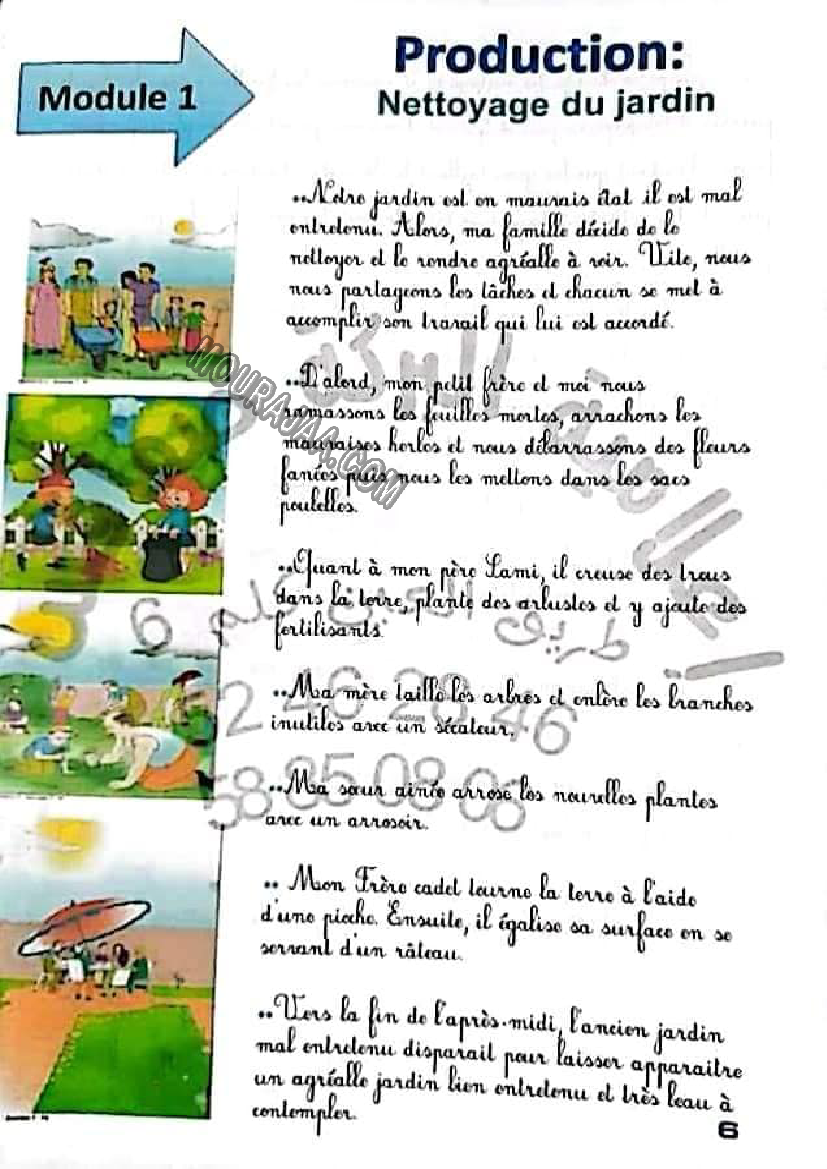 production nettoyage de jardin هو عنوان لمحور درس مادة الايقاظ العلمي لـسنة خامسة ابتدائي