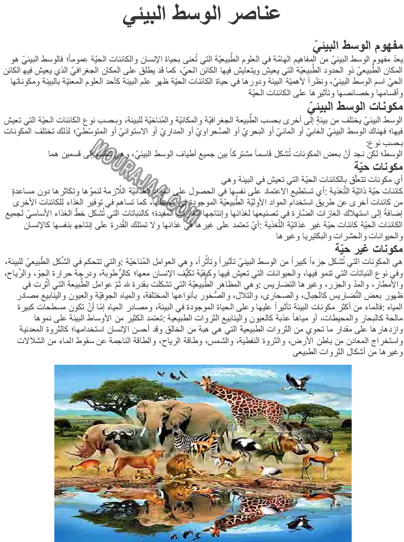 و يتمثل البحث تعريف عناصر الوسط البيئي و معلومات حوله مع صور لتبسيط درس عناصر الوسط البيئي في مادة االايقاظ العلمي لسنة سادسة ابتدائي