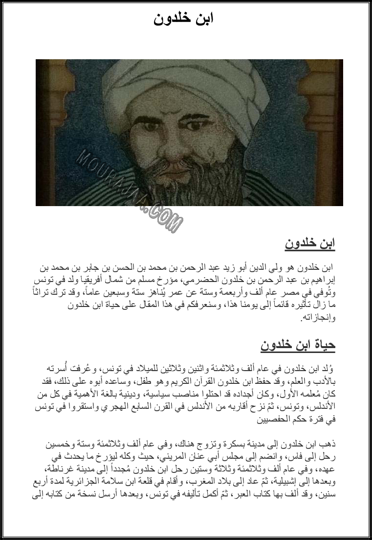 و يتمثل البحث تعريف ابن خلدون و معلومات حوله مع صور لتبسيط درس ابن خلدون في مادة االايقاظ العلمي لسنة سادسة ابتدائي